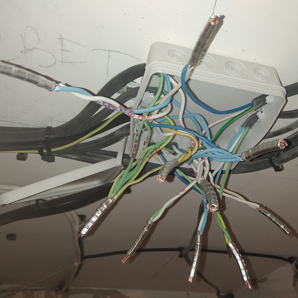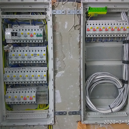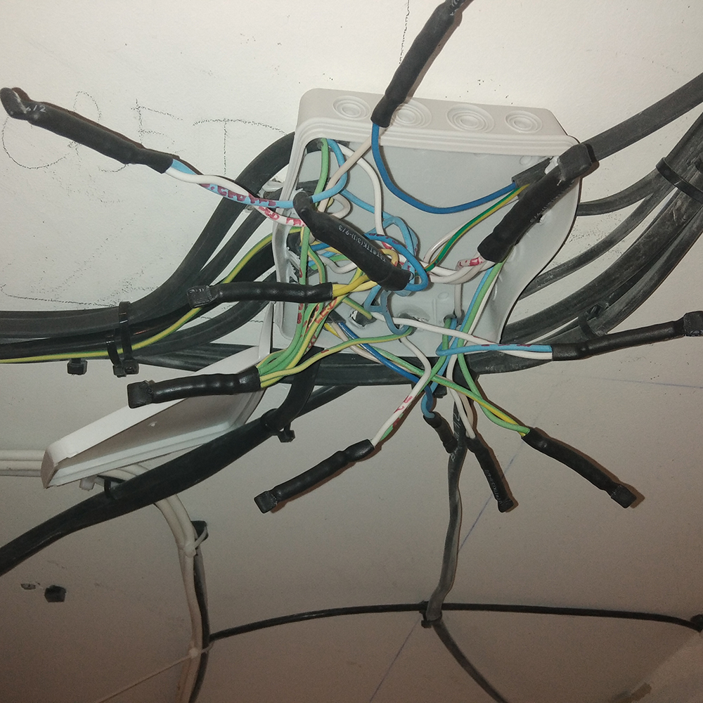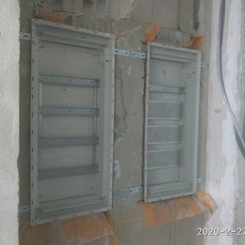 После завершения отделочных работ производиться установка розеток, выключаетелей, элементов освещения, пусконаладочные работы. В конце производиться испытание всех узлов электроснабжения.