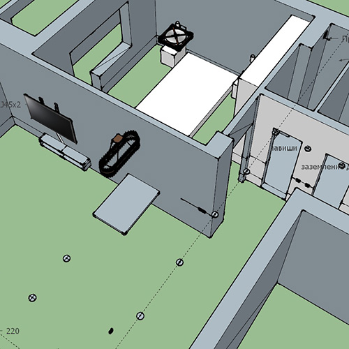 После подписания договора мы моделируем в 3D расположение всех элиментов электроснабжения и переносим их в виде разметки на реальный объект.