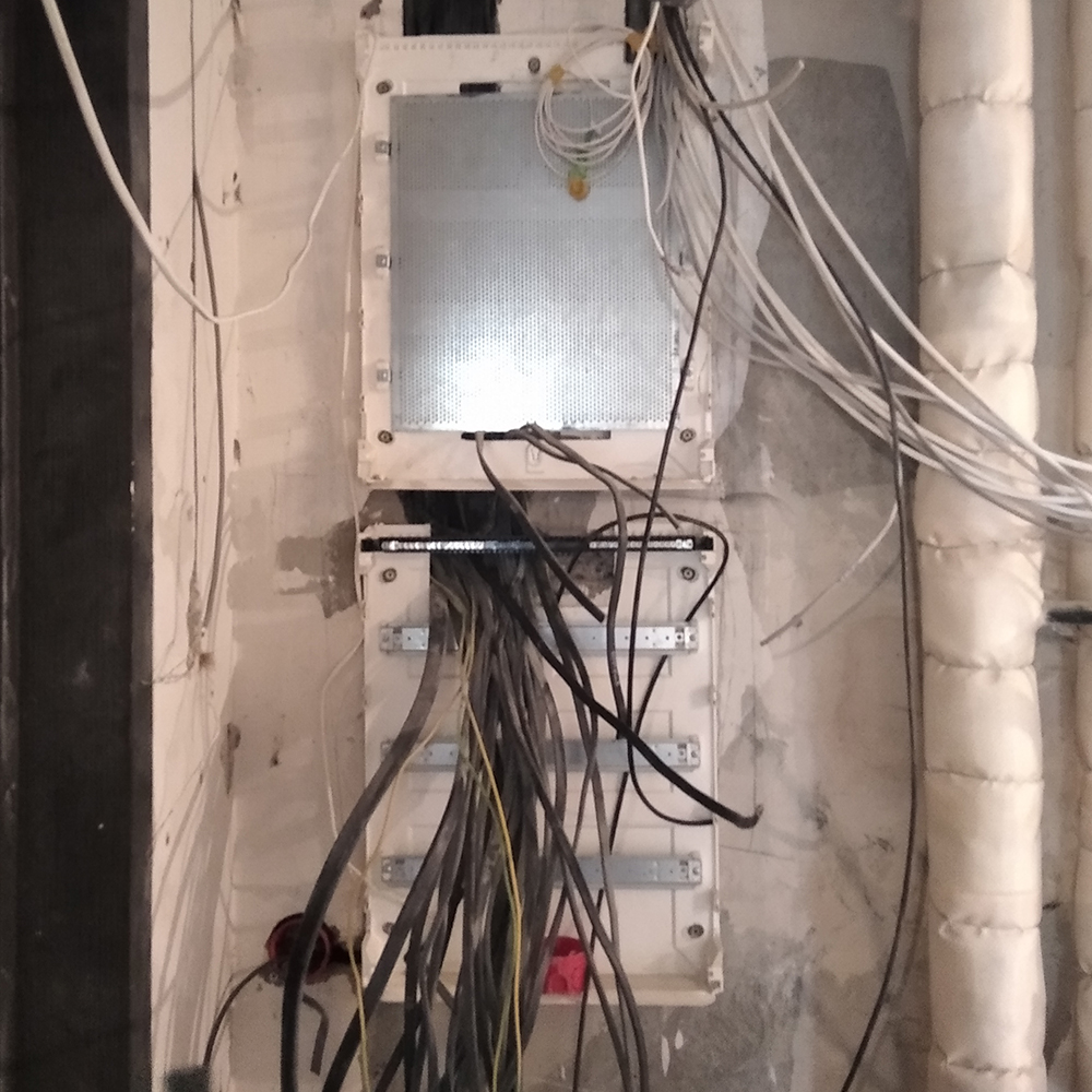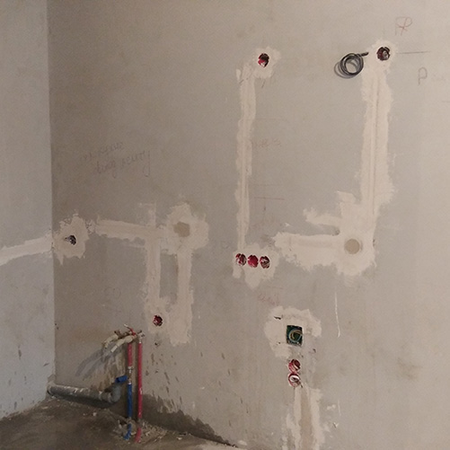 Бригада производит подготовитьельные работы, штробление, укладку кабеля, расключение щита, подключение чернового освещения и розеток, уборку после завершения этапа работ.